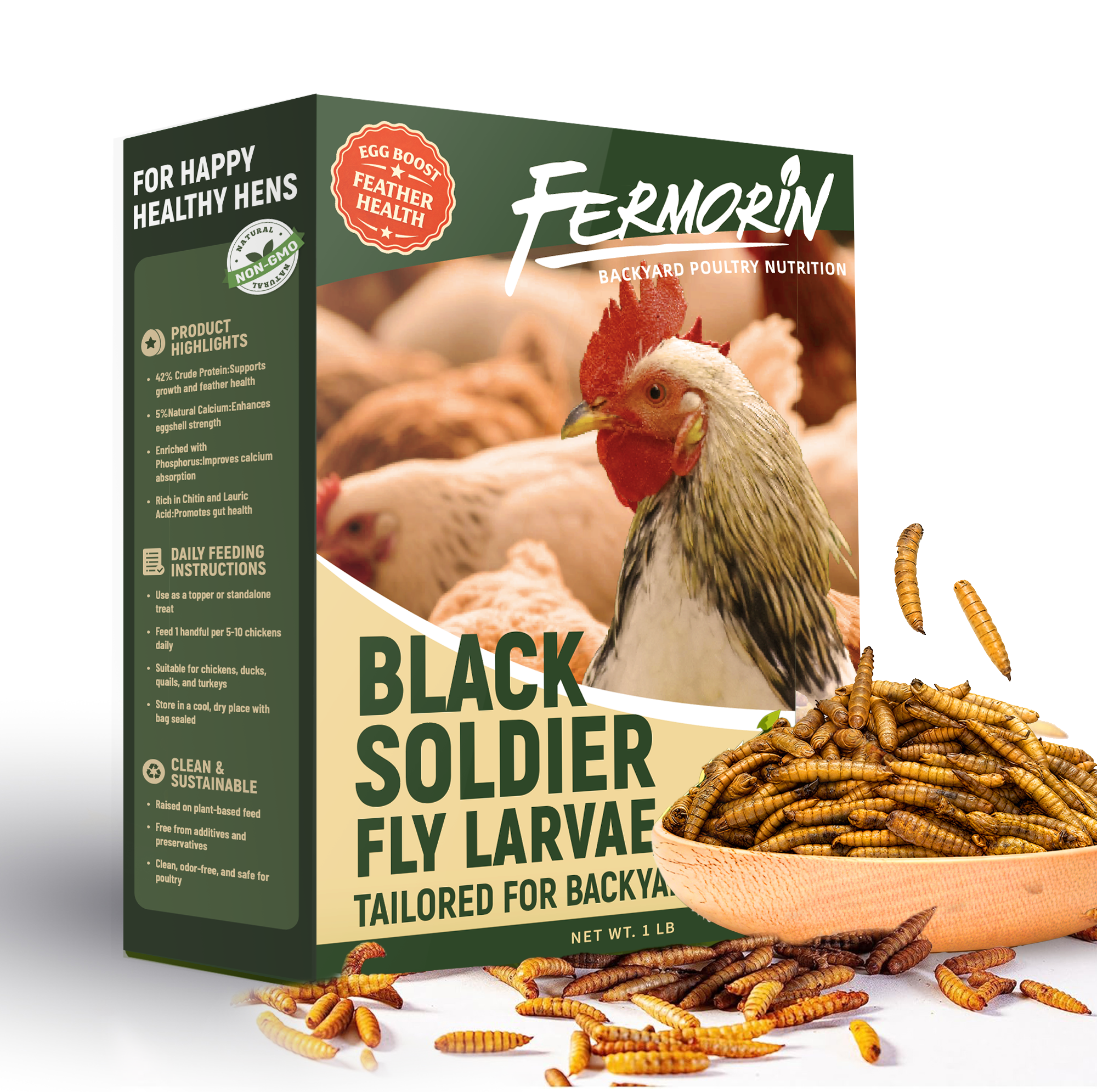 With naturally balanced protein, healthy fats, essential calcium, and nutrients that support immune and digestive health, Fermorin’s BSFL provides a cleaner, more complete way to nourish backyard chickens.